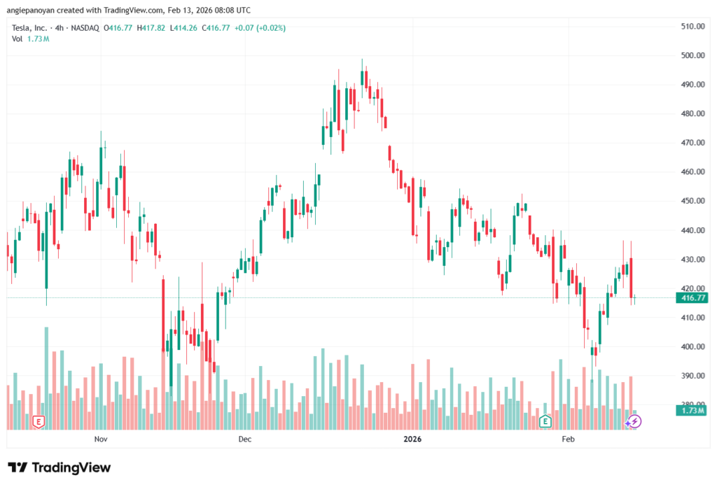 تحليل سهم تسلا الفني اليوم 2026-02-13