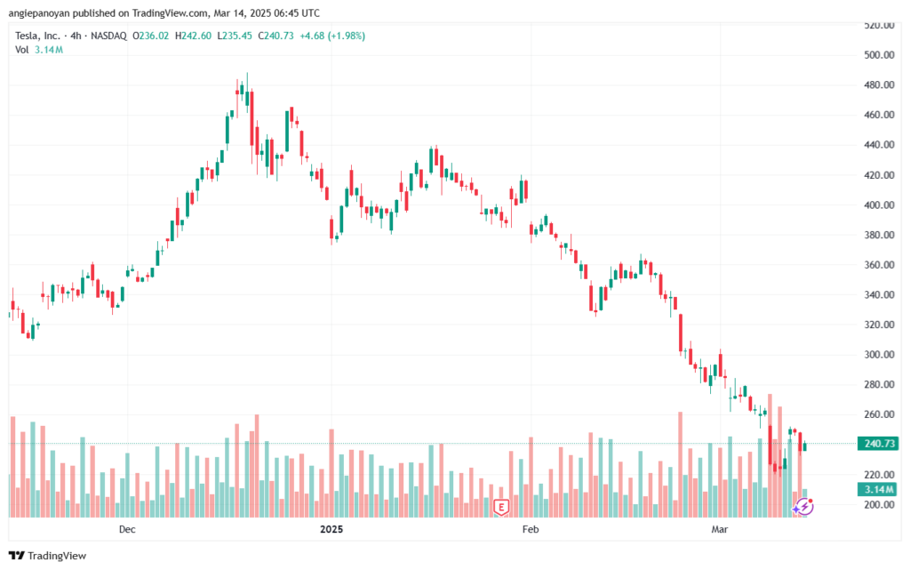 العوامل التي تؤثر على سهم تسلا اليوم 2025-3-14 سهم تسلا