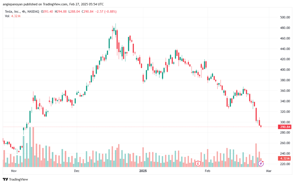 تحليل سهم تسلا الفني اليوم 2025-2-27