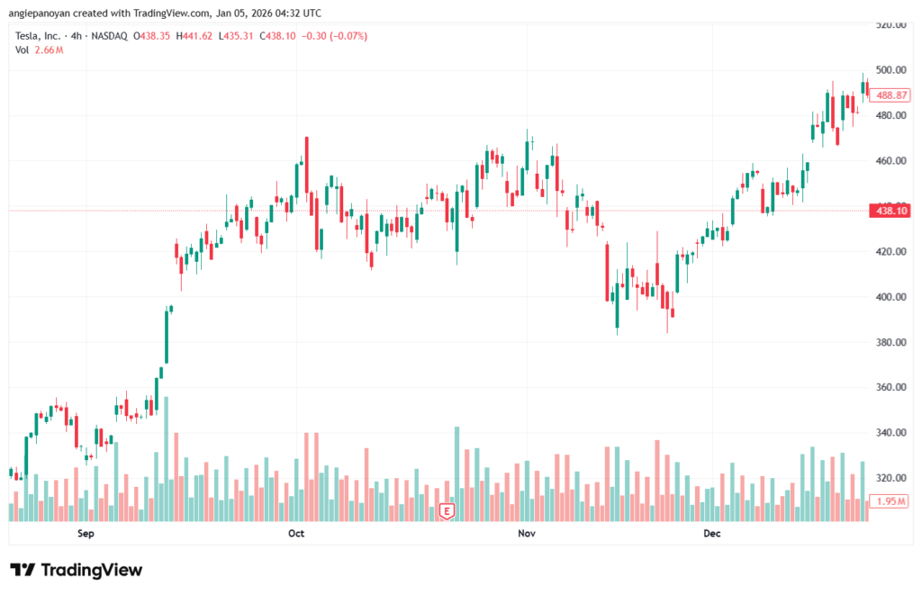 تحليل سهم تسلا الفني اليوم 2026-1-5