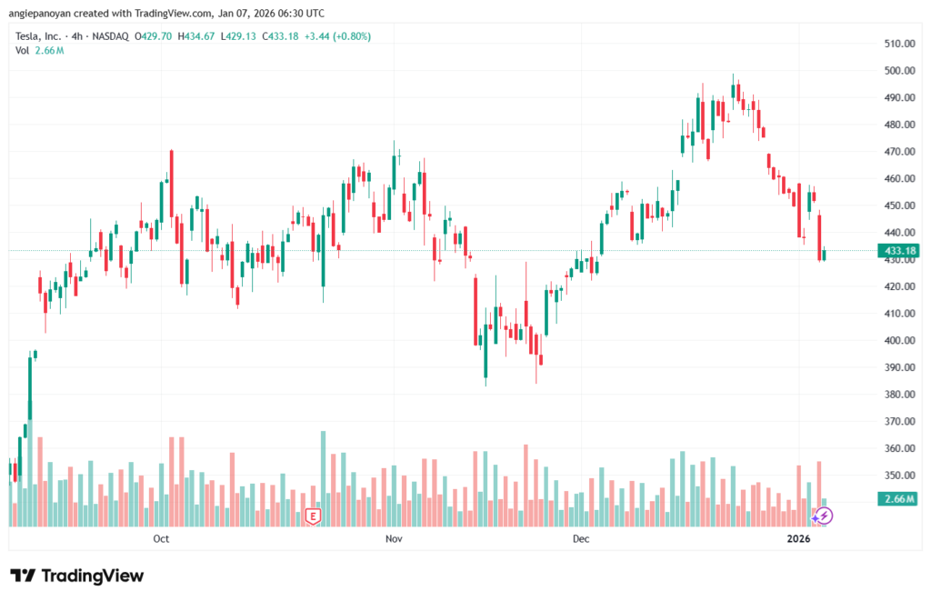 تحليل سهم تسلا الفني اليوم 2026-1-7