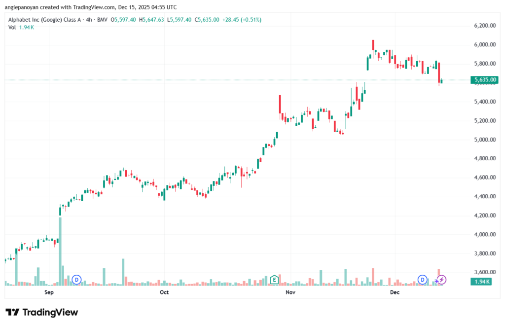 العوامل التي تؤثر على سهم جوجل اليوم 2025-12-15 تحليل سهم جوجل
