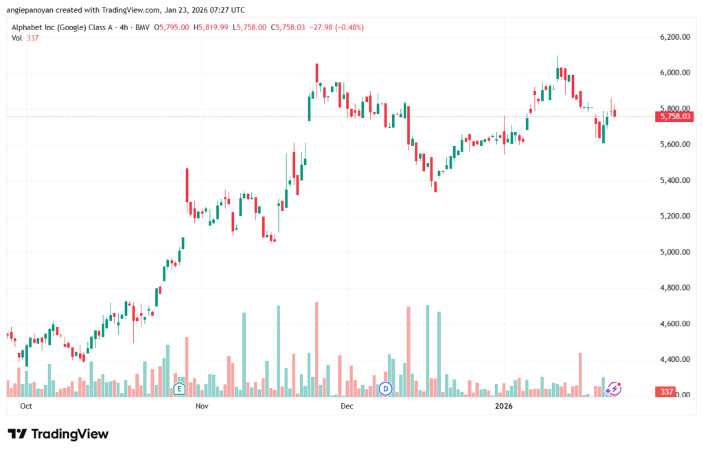 العوامل التي تؤثر على سهم جوجل اليوم 2026-1-23 تحليل سهم جوجل