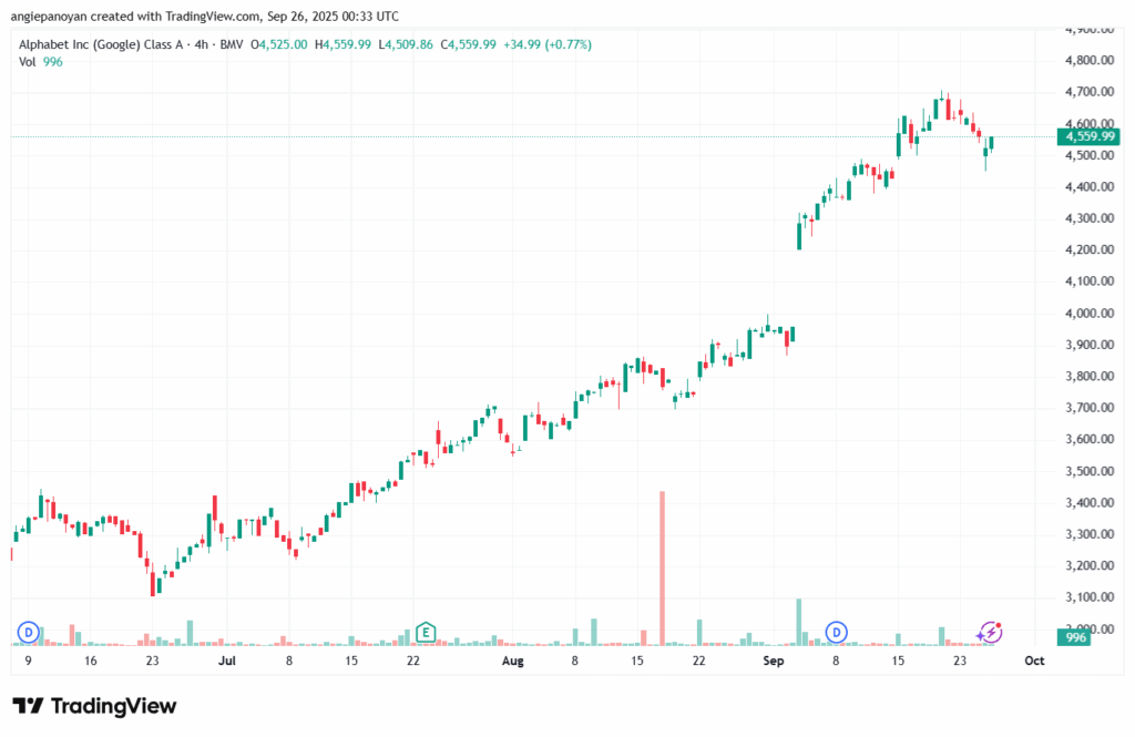 العوامل التي تؤثر على سهم جوجل اليوم 2025-9-26 تحليل سهم جوجل