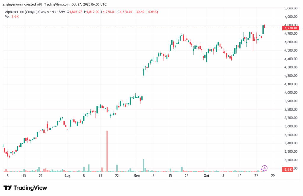 العوامل التي تؤثر على سهم جوجل اليوم 2025-10-27 تحليل سهم جوجل