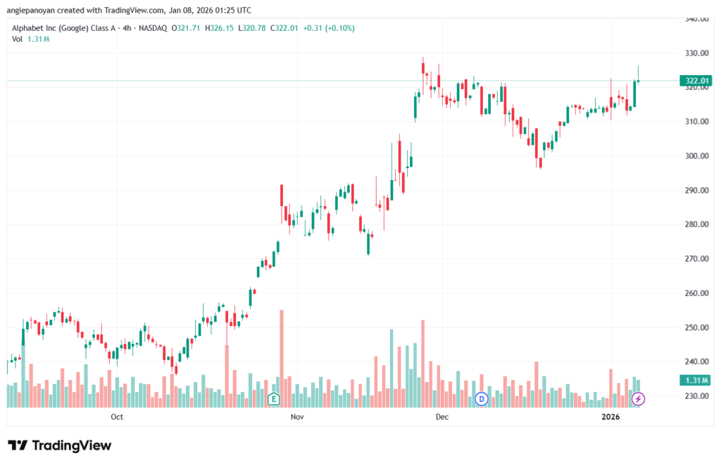 العوامل التي تؤثر على سهم جوجل اليوم 2026-1-8 تحليل سهم جوجل