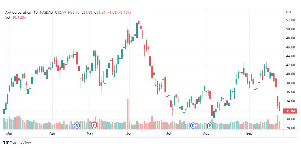 يذكر ان سهم إيه بي إيه APA CORPORATION (APA) حقق انخفاضاً بتداولاته الأخيرة على المستويات اللحظية.