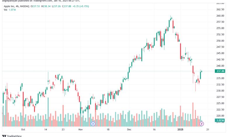 تحليل سهم ابل الفني اليوم 2025-1-20 تحليلات سهم ابل (الرمز: AAPL) تحليل سهم تسلا مرفق توقعات خبراء موقع توصيات لأهداف…