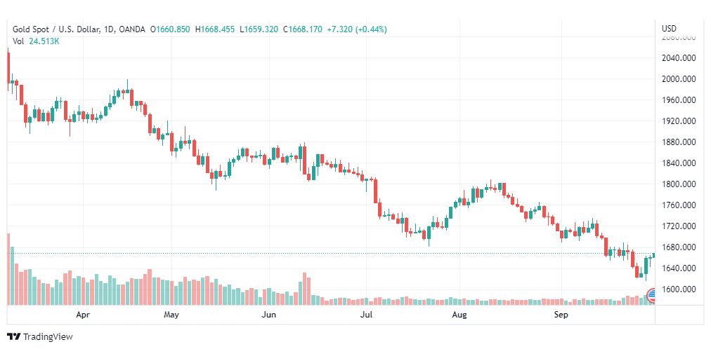 يذكر ان سعر الذهب عاد للارتفاع بشكل ملحوظ ليخترق مستوى 1660.00 ويغلق الشمعة اليومية فوقه، ليتجه نحو إجراء تصحيح صاعد إضافي خلال الجلسات القادمة، في طريقه لزيارة مستوى 1686.40 كمحطة تصحيحية تالية.