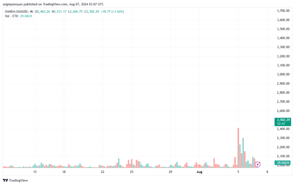 توصية شراء الذهب تنص على الدخول فوق نقطة الارتكاز 2397.12 وجني الأرباح عند الأهداف التالية: 2412.665, 2433.95, 2449.495