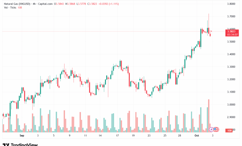 أخبار الغاز الطبيعي اليوم 2025-10-10 تحليلات الغاز الطبيعي مقابل الدولار الامريكي (الرمز: N-Gas) تحليل الغاز الطبيعي مرفق توقعات خبراء موقع…