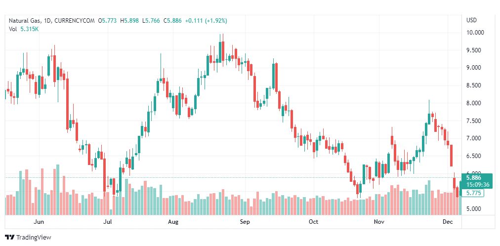يذكر ان سعر الغاز الطبيعي  استمر بتشكيله لموجات إيجابية وبذلك فانه يبتعد بذلك عن الدعم المستقر عند 5.350 بهدف تعزيز فرص بدء المحاولات الصاعدة للفترة القريبة والمتوسطة ليستقر بذلك قرب الهدف الأول المتمركز عند 5.900.