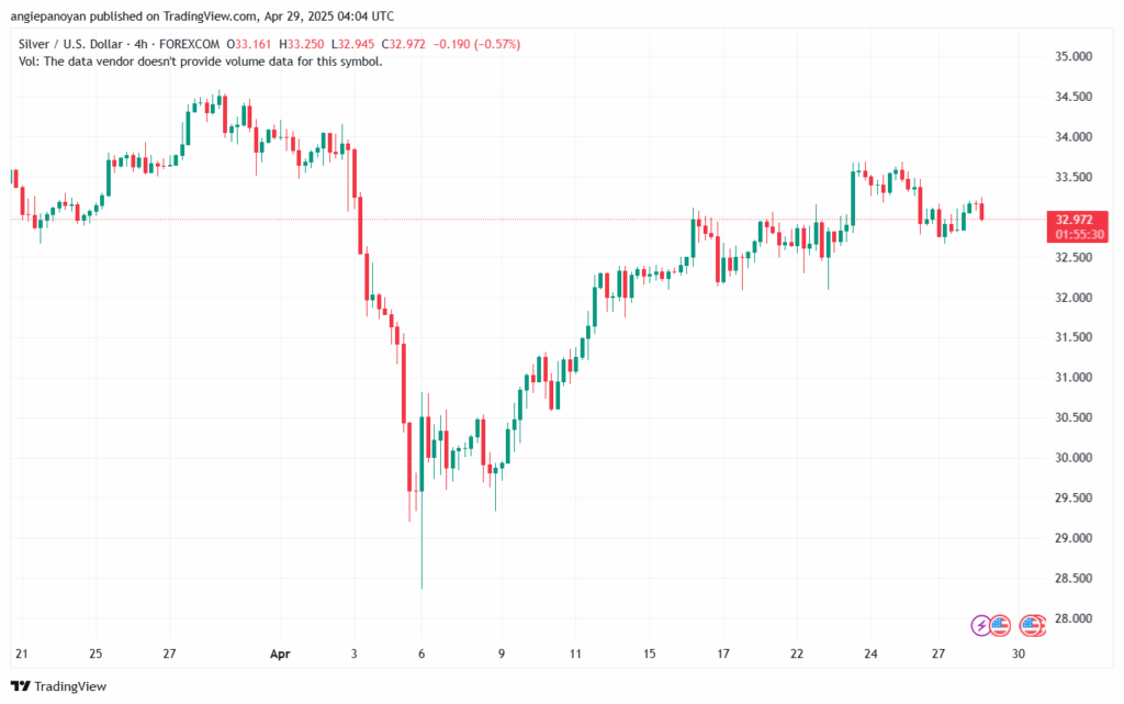 توصية شراء الفضة تنص على الدخول فوق نقطة الارتكاز 33.003 وجني الأرباح عند الأهداف التالية: 33.348, 33.542, 33.887 على التوالي.