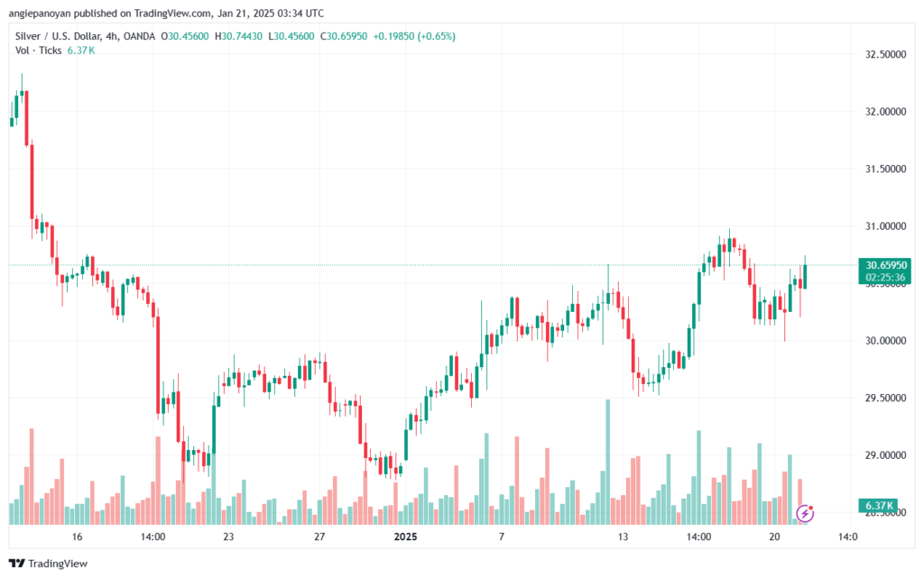 توصية شراء الفضة تنص على الدخول فوق نقطة الارتكاز 30.435 وجني الأرباح عند الأهداف التالية: 30.435, 31.149, 31.456