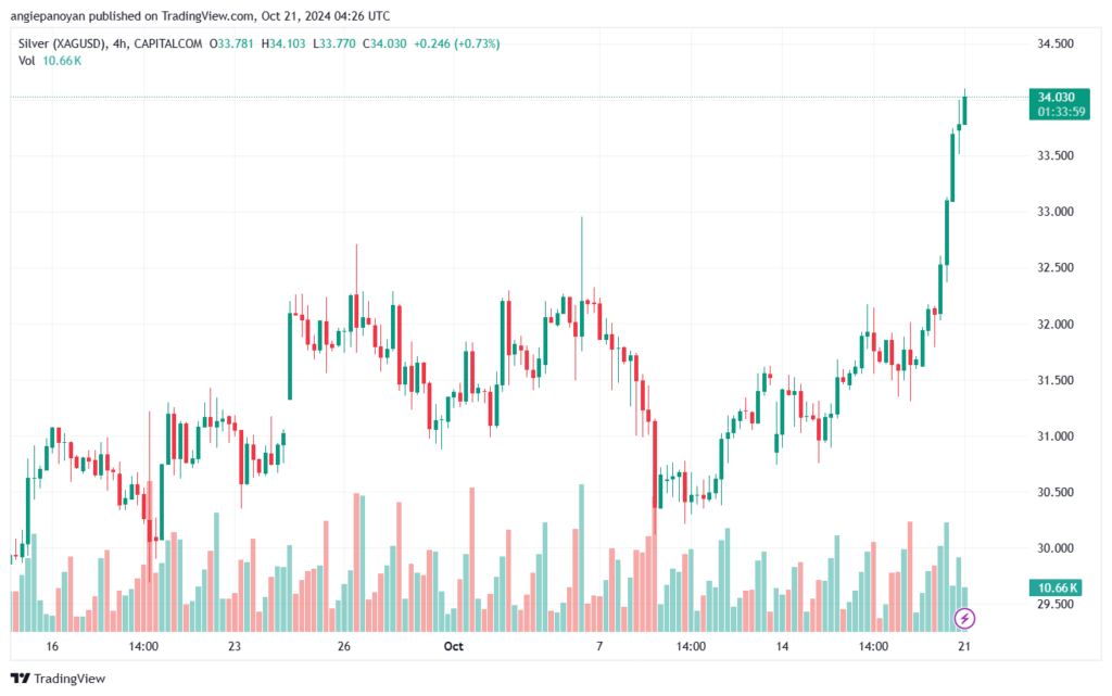 توصية شراء الفضة تنص على الدخول فوق نقطة الارتكاز 31.677 وجني الأرباح عند الأهداف التالية: 32.04, 32.386, 32.749