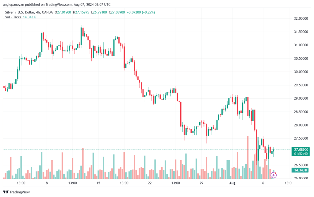 توصية شراء الفضة تنص على الدخول فوق نقطة الارتكاز 27.05 وجني الأرباح عند الأهداف التالية: 27.5, 28.022, 28.471
