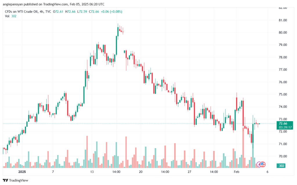 توصية شراء النفط تنص على الدخول فوق نقطة الارتكاز  73.194 وجني الأرباح عند الأهداف التالية: 74.325, 76.306, 77.437