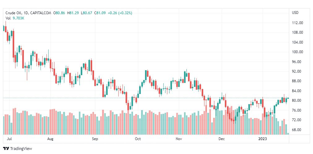 حسب ما ورد فان تداولات سعر النفط تستقر حول 80.75 بعد الارتفاع القوي الذي شهده يوم أمس، وبذلك نتوقع استمرار الميل الصاعد لاختبار مستوى 81.60 كمحطة إيجابية تالية، ليكون الاتجاه الصاعد مرجحاً خلال الجلسات القادمة.