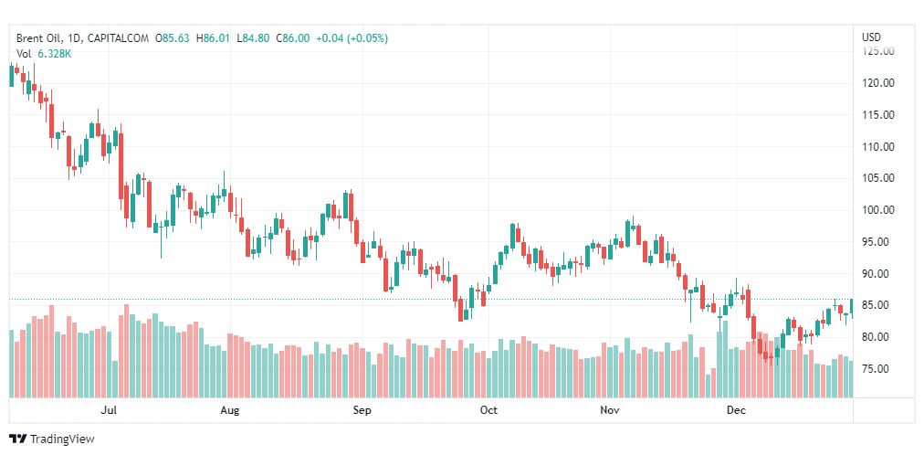 يذكر ان تداولات اسعار عقود خام برنت ارتدت بشكل صاعد ملحوظ في الجلسات الماضية، وبذلك يبدأ اليوم بارتفاع قوي ليخترق مستوى 85.12 ويحاول الثبات فوقه، مما يدفع السعر للتحول إلى الارتفاع والتوجه لإجراء تصحيح صاعد إضافي يصل هدفه التالي إلى مناطق 88.20.