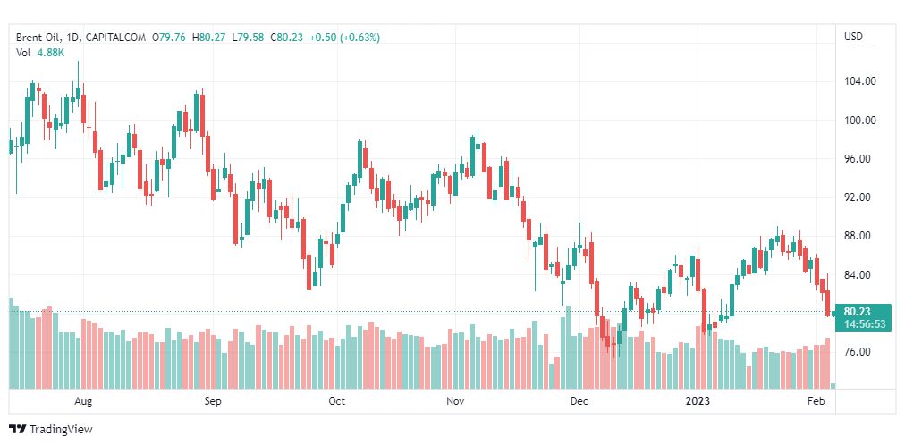 يذكر ان اسعار عقود خام برنت حققت انخفاضا حاد يوم الجمعة الماضي ليكسر مستوى 81.30 ويقترب من هدفنا السلبي المنتظر عند 79.20، وبذلك فاننا نرجح استمرار الميل الهابط خلال الجلسات القادمة لتحقيق مزيد من الأهداف السلبية التي تمتد إلى 78.30 ثم 77.45.