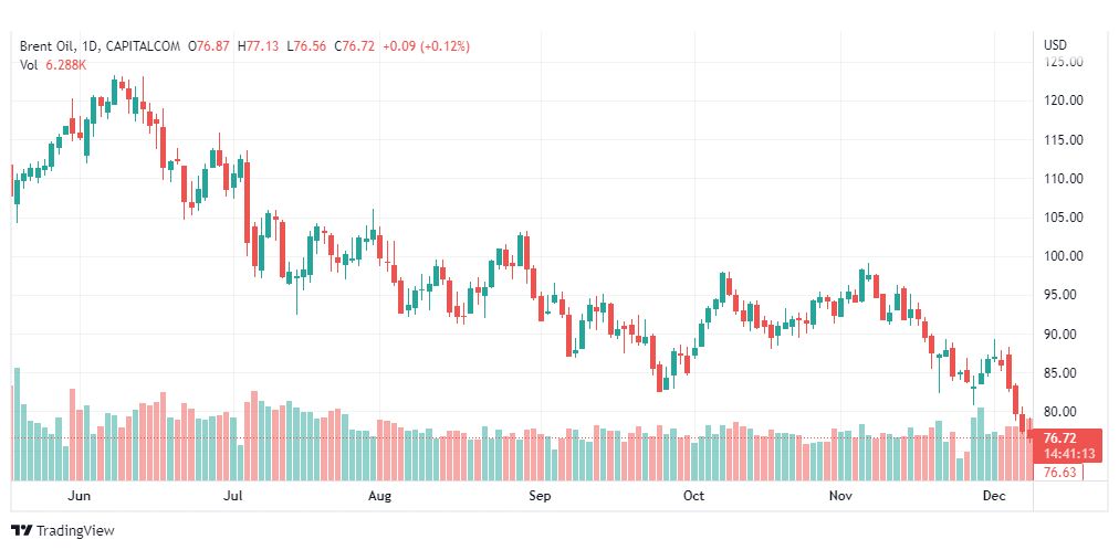 يذكر ان اسعار عقود خام برنت يتم تداولها بسلبية ملحوظة يوم أمس ليصل إلى حاجز 76.00، وبذلك يظهر بعض الميل الصاعد المؤقت بتأثير إيجابية مؤشر ستوكاستيك، نحن الان ننتظر بدء الاتجاه الهابط الذي يستهدف مستوى 74.40 كمحطة رئيسية تالية.