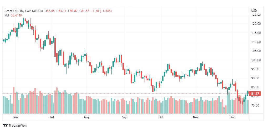 يذكر ان اسعار عقود خام برنت أغلق تداولات يوم أمس بسلبية ليضغط على مستوى 81.32، وبذلك يبدأ اليوم بميل هابط جديد في محاولة لكسره، بينما يقدّم مؤشر ستوكاستيك والمتوسط المتحرك 50 إشارات إيجابية قد تساعد بدفع السعر للارتفاع من جديد.