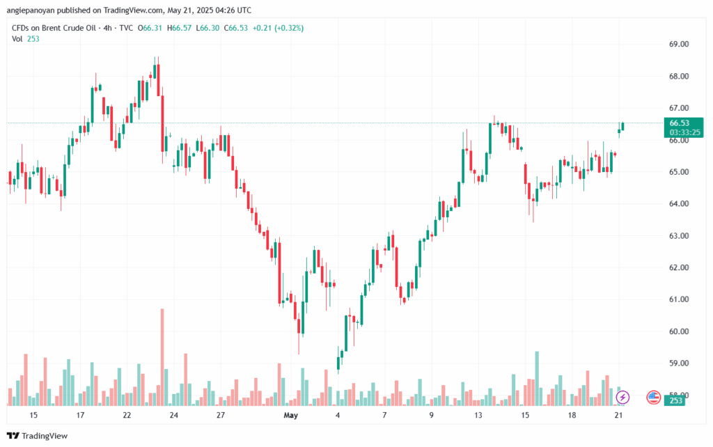 توصية شراء خام برنت تنص على الدخول فوق نقطة الارتكاز 65.490 وجني الأرباح عند الأهداف التالية: 66.12, 66.63, 67.26 على التوالي.