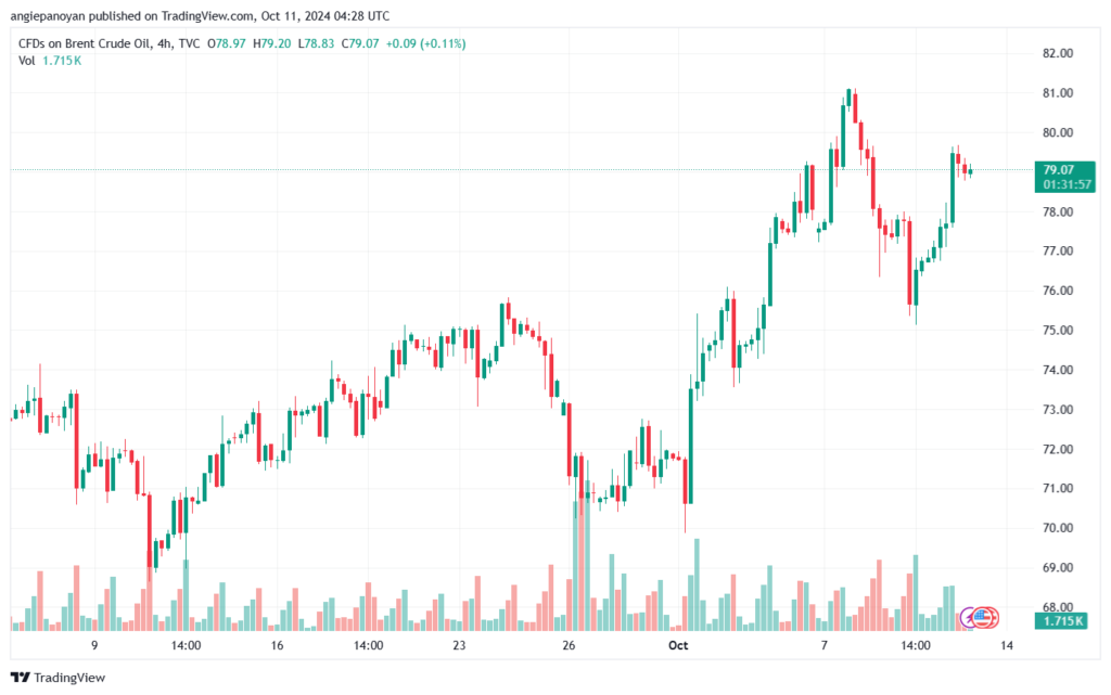 توصية شراء خام برنت تنص على الدخول فوق نقطة الارتكاز 76.637 وجني الأرباح عند الأهداف التالية: 78.108, 79.497, 80.968
