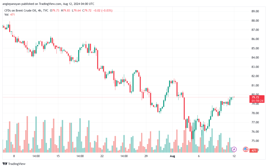 توصية بيع خام برنت تنص على الدخول ادنى نقطة الارتكاز 79.420 وجني الأرباح عند الأهداف التالية: 79.024, 78.370, 77.974