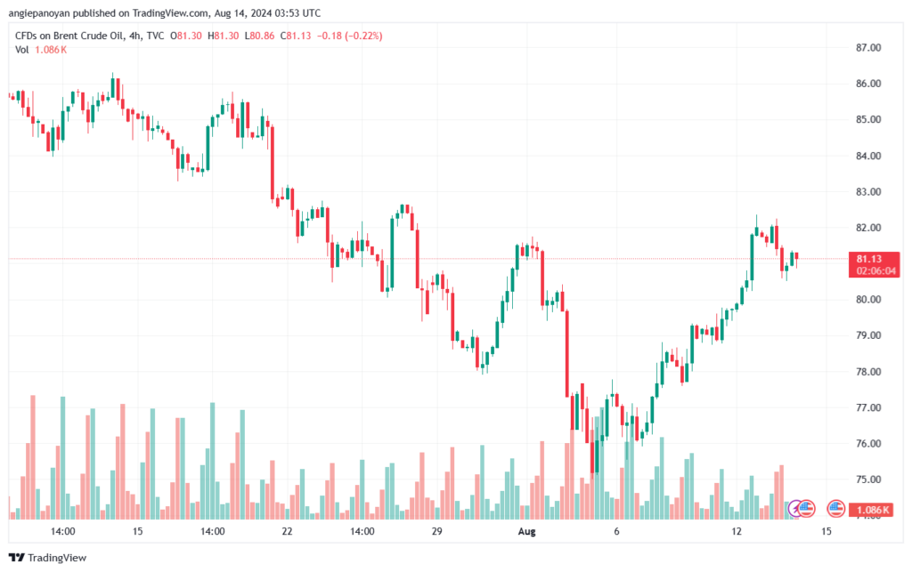 توصية شراء خام برنت تنص على الدخول فوق نقطة الارتكاز 81.268 وجني الأرباح عند الأهداف التالية: 81.992, 83.020, 83.744