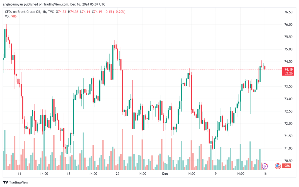 توصية شراء خام برنت تنص على الدخول فوق نقطة الارتكاز 73.266 وجني الأرباح عند الأهداف التالية: 74.109, 74.827, 75.670