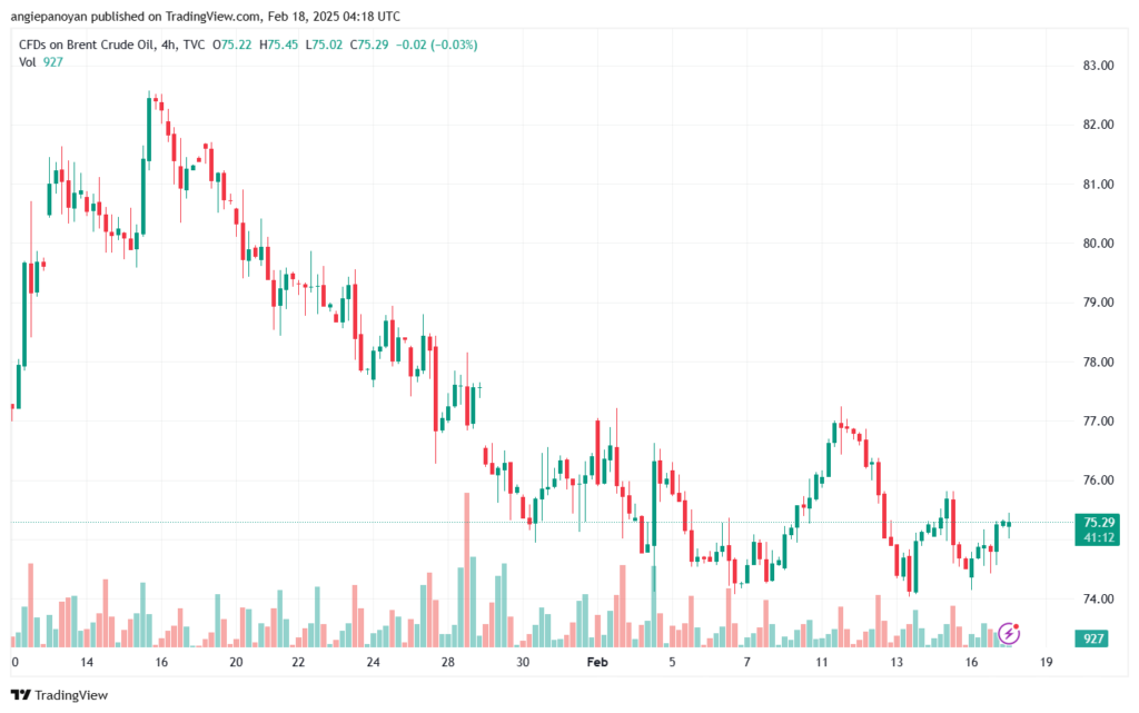 توصية بيع خام برنت تنص على الدخول ادنى نقطة الارتكاز 75.013 وجني الأرباح عند الأهداف التالية: 74.181, 73.731, 72.899