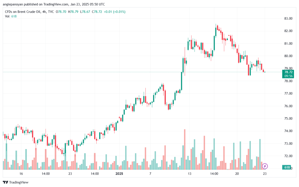 توصية شراء خام برنت تنص على الدخول فوق نقطة الارتكاز 79.427 وجني الأرباح عند الأهداف التالية: 80.401, 81.438, 82.412