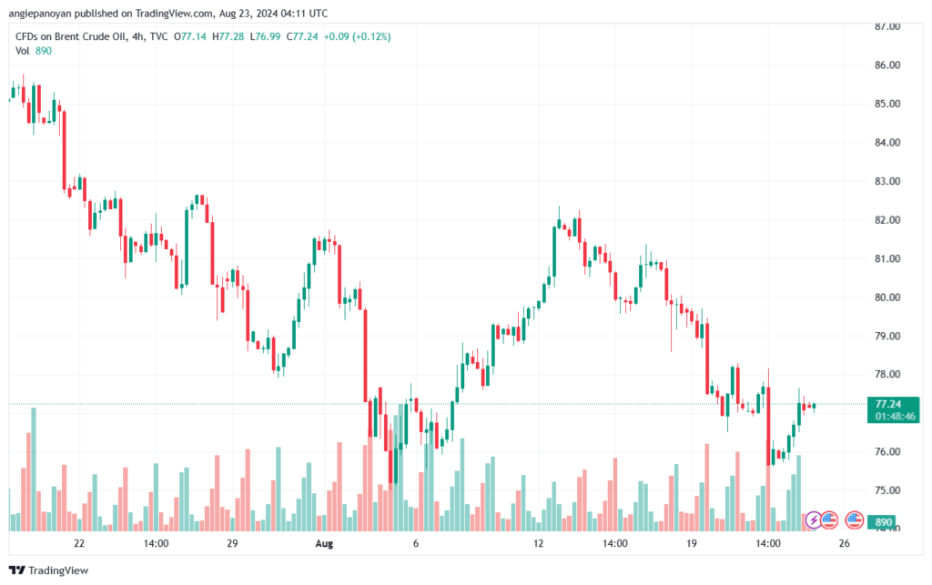 توصية شراء خام برنت تنص على الدخول فوق نقطة الارتكاز  76.651  وجني الأرباح عند الأهداف التالية: 77.658, 79.202, 80.209