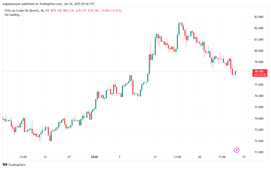 توصية شراء خام برنت تنص على الدخول فوق نقطة الارتكاز 78.428 وجني الأرباح عند الأهداف التالية: 79.052, 79.052, 80.844