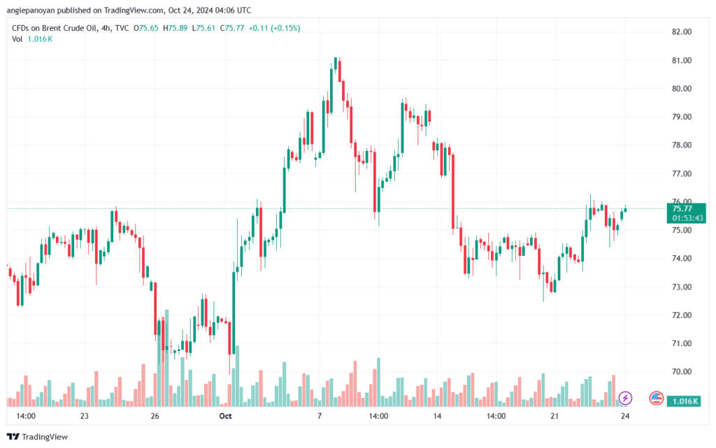 توصية شراء خام برنت تنص على الدخول فوق نقطة الارتكاز  75.165 وجني الأرباح عند الأهداف التالية: 76.756, 77.907, 79.498