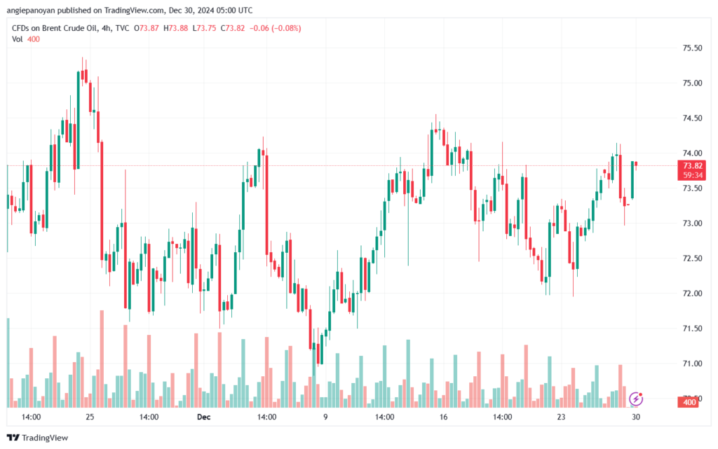 توصية شراء خام برنت تنص على الدخول فوق نقطة الارتكاز 73.715 وجني الأرباح عند الأهداف التالية: 74.381, 74.957, 74.957