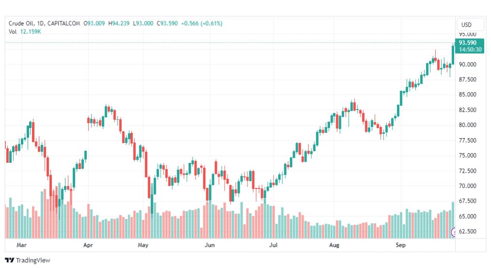 حسب ما ورد فان سعر نفط خام تكساس (الرمز: CL) اندفع صعوداً بشكل قوي يوم أمس ليتخطّى أهدافنا الإيجابية المقترحة في تقريرنا الأخير ليصل إلى حاجز 95.00 الآن، ونتوقّع استمرار الميل الصاعد لتحقيق أهداف إيجابية إضافية تصل إلى مناطق 96.60.