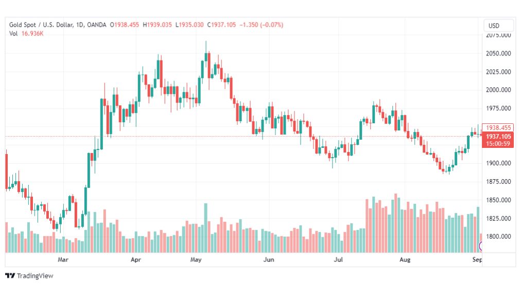 يذكر ان سعر الذهب (الرمز: XAUUSD) لم يتمكّن من اختراق مستوى 1945.20، ليرتد هبوطاً ويكسر مستوى 1938.50، مما يضع السعر تحت ضغط سلبي متوقّع خلال الجلسات القادمة، حيث نلاحظ اكتمال نموذج قمة مزدوجة يملك أهداف سلبية تبدأ باختبار 1929.00، مع الإشارة إلى أن كسر هذا المستوى سيدفع السعر إلى 1913.15 كهدف رئيسي تالي.