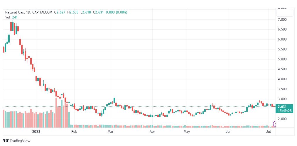 يذكر ان سعر الغاز الطبيعي (الرمز: NG) عاد للدخول بالسبات السعري مشكلا المزيد من التذبذب الجانبي الضعيف بتمركزه عند 2.650, تعارض المؤشرات الرئيسية وبالتحديد بهبوط مؤشر ستوكاستيك دون مستوى 50 سيعيق المحاولات الصاعدة للفترة الحالية.