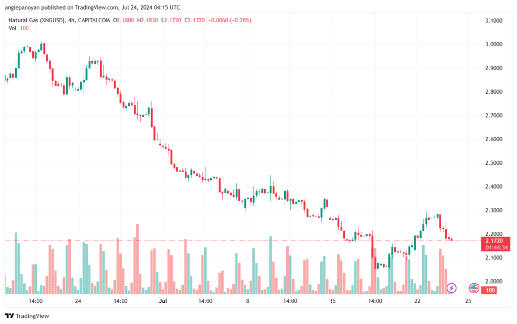 توصية شراء الغاز الطبيعي تنص على الدخول فوق نقطة الارتكاز 2.1806 وجني الأرباح عند الأهداف التالية: 2.2376, 2.3226, 2.3796