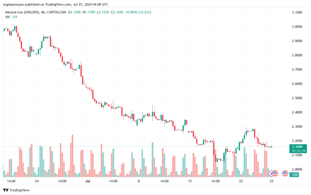 توصية شراء الغاز الطبيعي تنص على الدخول فوق نقطة الارتكاز 2.1333 وجني الأرباح عند الأهداف التالية: 2.1647, 2.2009, 2.2323