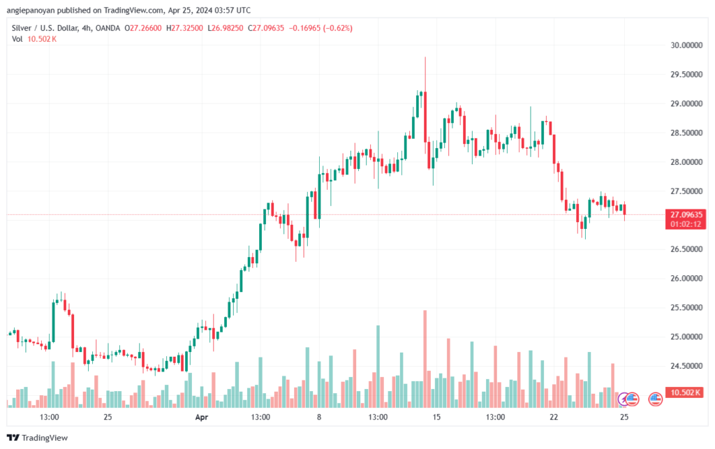 يواجه سعر الفضة الرمز (XAGUSD) ما زال محصورًا بين مستوى الدعم عند 26.90$ والمستوى المقاوم عند 28.00$. تقاطع في المؤشرات الفنية يجعلنا نظل حياديين حتى يتمكن السعر من اختراق أحد هذين المستويين. في حالة كسر مستوى الدعم، فإن ذلك قد يدفع السعر لزيارة المستوى التصحيحي التالي الواقع عند 26.00$. بالمقابل، إذا تمكن السعر من اختراق المقاومة، فسيقود ذلك إلى محاولة استئناف المسار الصاعد وتحقيق أهداف إيجابية تبدأ بزيارة مناطق 28.95$.