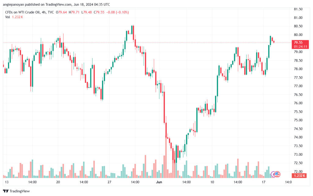 ومن هذا المنطلق، نستمر في ترجيح الاتجاه الصاعد على المدى اللحظي والقصير، حيث يدعمه المتوسط المتحرك 50 الذي يدفع السعر من الأسفل. ويجدر بنا الانتباه إلى أن كسر مستوى 79.55$ سيوقف الارتفاع الحالي ويضع ضغطًا على السعر للانخفاض.