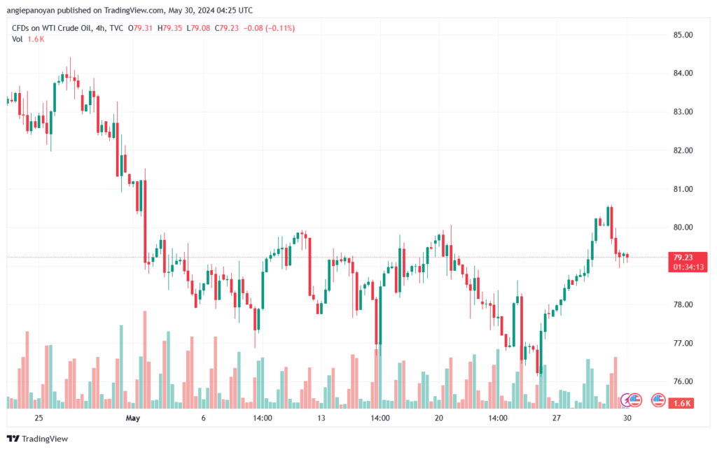 لذلك، يُتوقع استمرار الميل الهابط لهذا اليوم، وسيُسهّل كسر مستوى 79.00$ مهمة السعر لتحقيق الهدف المذكور. يجب مراعاة أن اختراق مستوى 79.60$ والثبات فوقه من جديد سيعيد تفعيل الموجة الصاعدة التي تستهدف مناطق 81.50$ بشكل أساسي.