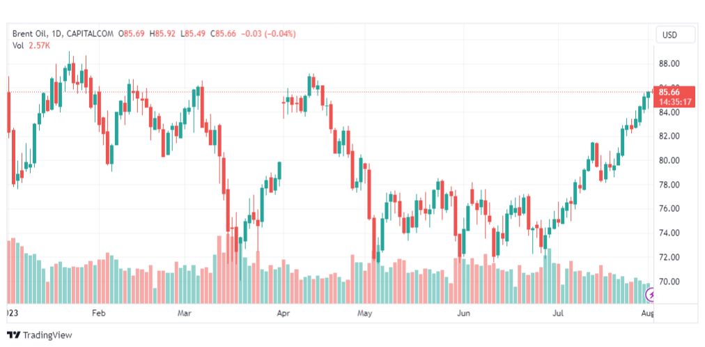ولهذا فتوقعاتنا تشير إلى استمرار صعود سعر خام برنت خلال تداولاته القادمة على المستويات اللحظية، ليستهدف مستوى المقاومة المحوري والقريب 87.25.