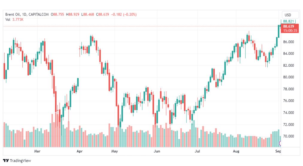 اسعار عقود نفط خام برنت (الرمز: BZ) يظهر بعض الميل الصاعد الطفيف مع افتتاح اليوم، ليقدّم إشارات على التوجه لاستئناف الاتجاه الرئيسي الصاعد، والذي يستهدف مستويات 90.00 ثم 92.35 كمحطات رئيسية تالية.