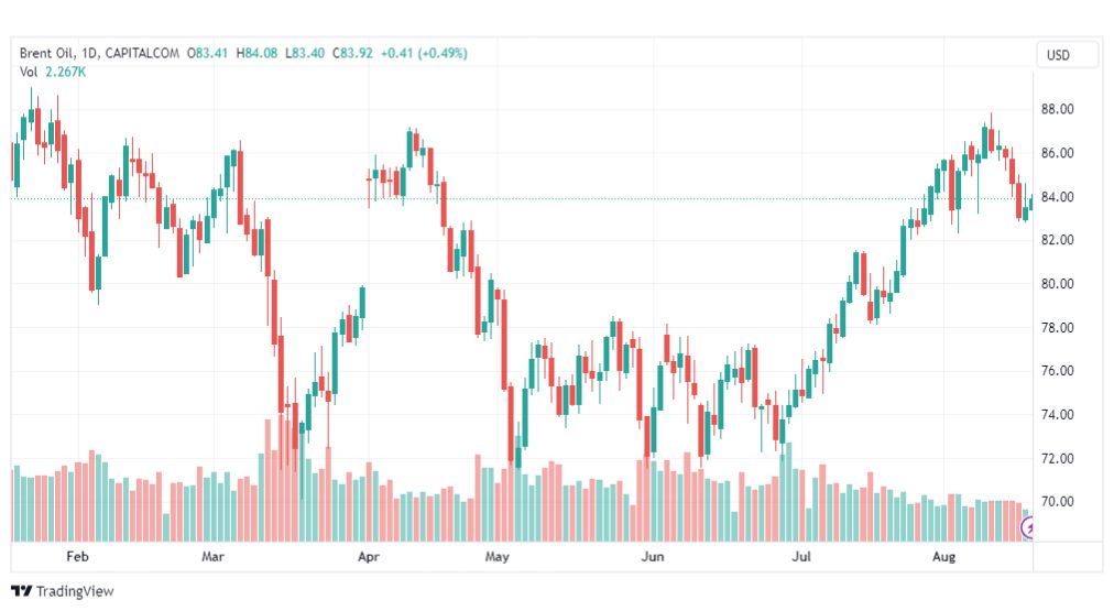 اسعار عقود نفط خام برنت (الرمز: BZ) يجري اختباراً للمقاومة المحورية 84.33 الآن، ويحتاج السعر للتماسك دون هذا المستوى ليبقى الاتجاه التصحيحي الهابط قائماً، والذي يستهدف مستويات 83.15 ثم 81.90 كمحطات رئيسية تالية.