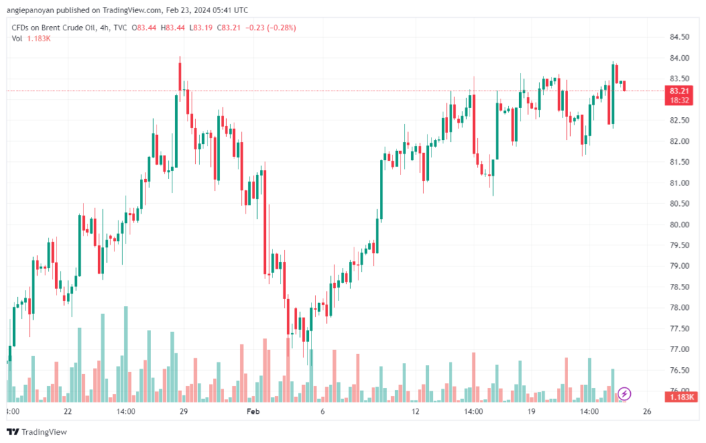 تمكن سعر عقود نفط خام برنت الرمز (BZ) من تحقيق هدفنا المنتظر عند 83.87 وارتد هبوطاً من هناك، مما يُظهر إشارات على الانتقال نحو بناء موجة هابطة على المدى اللحظي. يُتوقع أن تستهدف هذه الموجة زيارة مستويات 82.50 ثم 81.00 كمحطات رئيسية تالية.