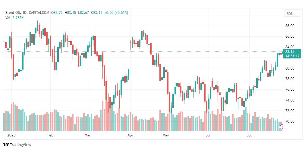 اسعار عقود نفط خام برنت (الرمز: BZ) يقدّم تداولات إيجابية ملحوظة الآن ليبدأ بمهاجمة مستوى المقاومة 83.50 ويحاول الثبات فوقه، مما يدعم استمرار سيناريو الاتجاه الصاعد المتوقع للفترة القادمة، والذي يستهدف مناطق 85.00 بشكل رئيسي.